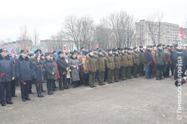 Мітынг каля помніка сабраў сотні гамяльчан, у тым ліку моладзь, дзяцей. Як адзначыў намеснік старшыні аблвыканкама Дзмітрый Алейнікаў, воіны-інтэрнацыяналісты, якія прайшлі праз Афганістан і іншыя гарачыя кропкі, па праву лічацца прадаўжальнікамі баявых традыцый нашых дзядоў і прадзедаў, якія ваявалі ў гады Вялікай Айчыннай вайны, яны ўнеслі і ўносяць значны ўклад у развіццё краіны, з'яўляюцца годным прыкладам для падрастаючага пакалення.