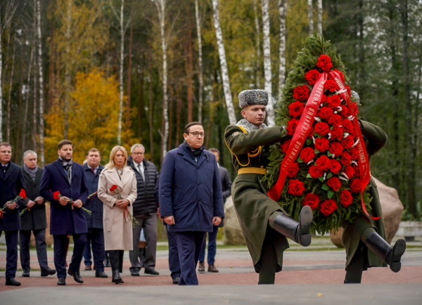 Удзельнікі калегіі ўсклалі кветкі да мемарыяла і ўшанавалі памяць ахвяр вайны хвілінай маўчання.