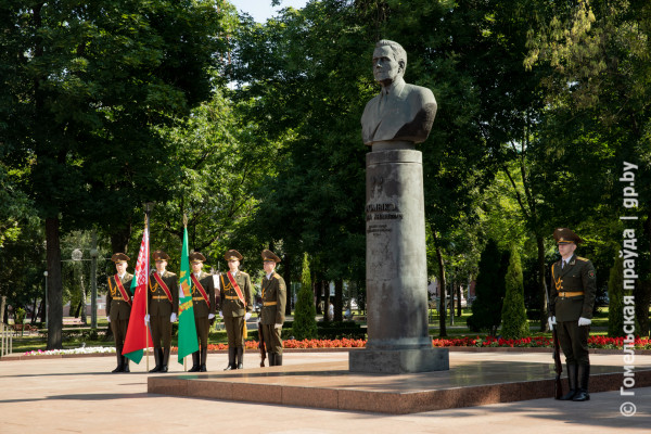 В митинге и возложении приняли также участие заместитель председателя облисполкома Дмитрий Алейников, председатель комитета идеологической работы и по делам молодежи Денис Езерский, руководитель Русского дома в Гомеле, первый секретарь Посольства Российской Федерации в Республике Беларусь Ольга Бороненко, представители научного сообщества, молодежь.