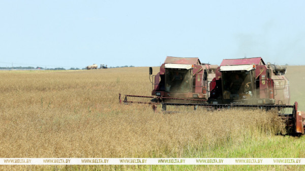 В Беларуси на 12 августа намолочено зерна (с учетом рапса) 7,066 млн т, из них - 6,010 млн т зерновых и зернобобовых культур (87% подлежащих уборке площадей, урожайность - 33,6 ц/га), 1,056 млн т озимого рапса.