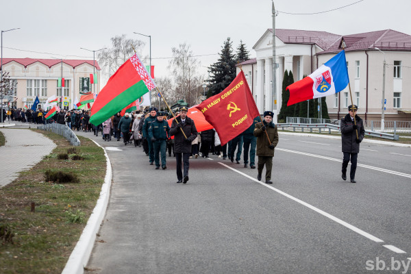 Пятью днями ранее райцентр получил символическое Знамя Победы на праздновании освобождения Речицы. Теперь оно передано представителям Хойникского района, где продолжится акция.