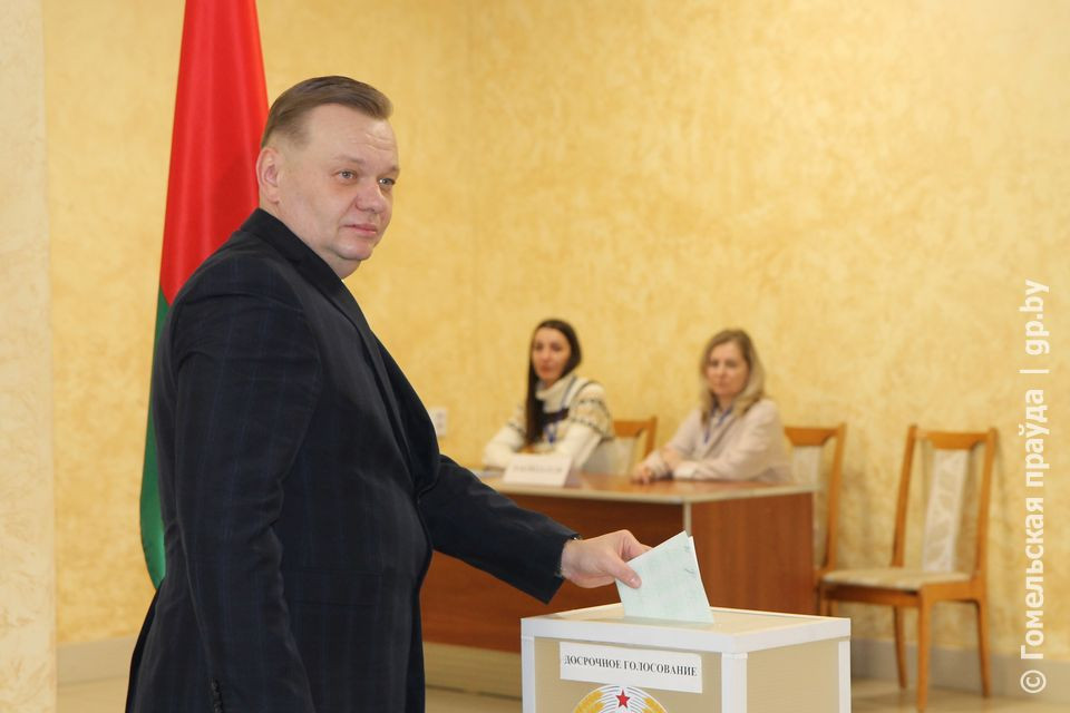Заместитель председателя облисполкома отдал свой голос за будущее страны досрочно на участке № 76, который располагается в Гомельском областном Доме профсоюзов.