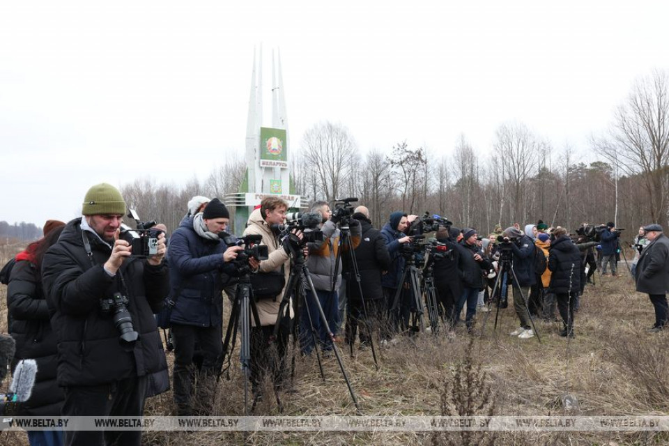 Иностранные и белорусские журналисты прибыли в не функционирующий в настоящее время пункт пропуска "Новая гута". В мероприятии приняли участие работники нескольких редакций RT, Sputnik, Polsat, Washington Press, CCTV, НТВ, Первого канала, телеканала "Звезда", AFP, RFI и другие. Представителям СМИ предоставлена возможность лично ознакомится с ситуацией на южной границе нашей страны.