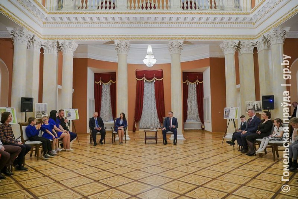 Во Дворце Румянцевых и Паскевичей о своих увлечениях, достижениях и традициях губернатору рассказали шесть семей: Веракса, Макаревич, Никонович, Новиковы, Перженица, Фомины.