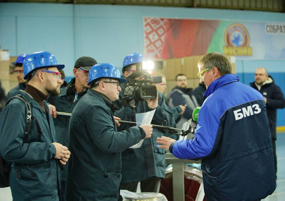 На БМЗ трудятся 11 тысяч человек, предприятие работает в круглосуточном режиме. Каждый час выплавляется около 300 тонн жидкой стали. Журналистам предоставилась возможность лично понаблюдать за процессом во время посещения электросталеплавильного цеха.