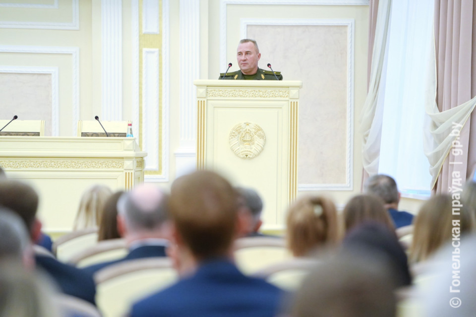 – Каждый житель нашей страны должен понимать, что основная задача, которую перед нами поставил главнокомандующий, – обеспечить мир на белорусской земле. И она будет выполнена, чего бы это нам ни стоило, – отметил помощник министра обороны по идеологической работе в Вооруженных Силах – начальник главного управления идеологической работы Министерства обороны Беларуси Леонид Касинский. – От выполнения этой задачи будет зависеть и остальной спектр всех составляющих национальной безопасности, потому что если не будет мирного неба над Беларусью, то не будет ничего.