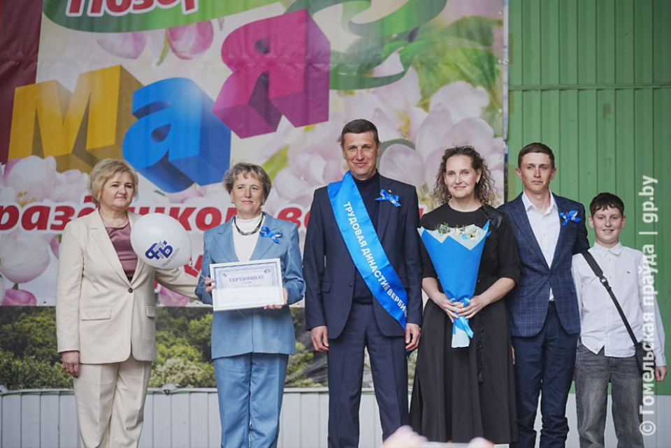 История спортивной династии Вербицких – почти вековой стаж работы в отрасли спорта и множество спортивных достижений. У семьи Козловых четыре поколения медицинских работников с общим трудовым стажем 262 года. Династию Лацко объединяет три поколения с общим стажем почти в 141 год на производственном объединении «Белоруснефть». Династия Макаренко-Полетай с общим стажем работы более 180 лет в Гомельских тепловых сетях на праздник собралась почти в полном составе. Четыре поколения семьи Шеренковых-Корниенко – это десять педагогов, 209 счастливых учебных года, множество талантливых и благодарных учеников. Вся трудовая деятельность семьи Демьяненко-Гурских связана с коммунальным производственным унитарным предприятием «Гомельводоканал». Гордость ОАО «Локон», его потенциал и перспектива – трудовая династия Коротченя-Будник. Историю династии Евсеенко начал писать Николай Афанасьевич, родившийся в далеком 1931 году. Сегодня на счету 128 лет общего трудового стажа, а отцовский пример определил будущее сыновей Александра и Константина. В династии Петровых-Говоровых из ОАО «СтанкоГомель» традиции, любовь к своему делу и высокий профессионализм бережно передаются из поколения в поколение. В семье Ярмош Житковичского филиала Гомельского потребительского общества общий трудовой стаж насчитывает 109 лет.