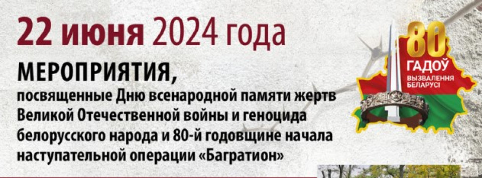 Программа мероприятий на Гомельщине, посвященных Дню всенародной памяти жертв Великой Отечественной войны и геноцида белорусского народа и 80-й годовщине начала наступательной операции «Багратион»