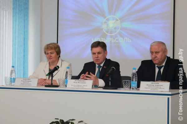 Участники мероприятия начали работу с посещения ОАО «Мозырьсоль». Генеральный директор предприятия Владимир Дворник поделился опытом по созданию достойных условий труда и отдыха для коллектива, провел экскурсию по производству.