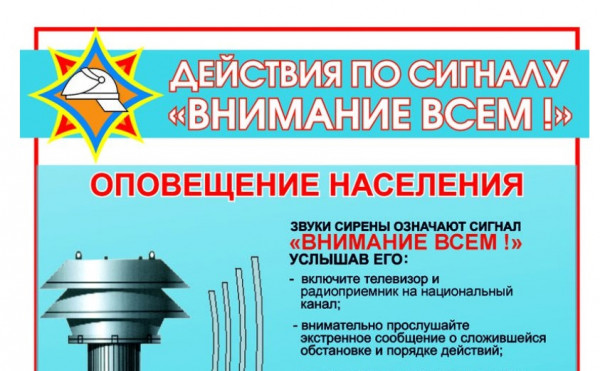 Помните, что при подаче сигнала «Внимание всем!» путем включения электромеханических сирен, специализированных технических средств оповещения, а также других сигнальных средств, необходимо включить радиоприемник и прослушать экстренное сообщение о сложившейся обстановке и порядке действия населения. Полностью прослушав и поняв речевую информацию, необходимо выполнить все рекомендации.