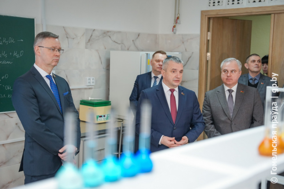 На биологическом факультете глава региона посетил две лаборатории: аналитической и неорганической химии, «Флора и растительность». Ученые рассказали о своем недавнем открытии: в Новобелицком районе Гомеля обнаружили незарегистрированный и неописанный ранее вид грибов.