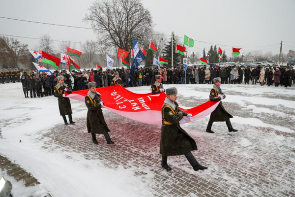 Торжественный митинг у «Скорбящего колокола» стал следующей остановкой в маршруте участников республиканской акции «На пути к Победе!» Акция проходит по принципу эстафеты с соблюдением хронологического порядка, в котором 80 лет назад освобождались населенные пункты, а враг навсегда изгонялся с белорусской земли. Первым Знамя Победы принял городской поселок Комарин, находящийся на территории Брагинского района. Символ Победы уже побывал в нескольких городах Гомельской области. В торжественной обстановке в присутствии многочисленных гостей прошла передача Знамени Победы от Светлогорского района Наровлянскому.