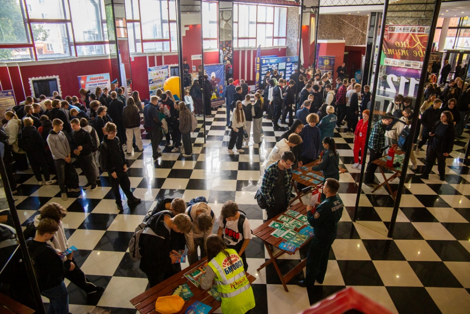 В фойе расположились тематические площадки МЧС, ГАИ УВД облисполкома, ОСВОДа, газовой службы, областной организации Белорусского Красного Креста, Департамента охраны. Свои стенды также подготовили медики, представители Гомельэнерго, Госэнергогазнадзора, поисково-спасательного отряда «Симуран». Все они были объединены одной целью – обучить действиям в чрезвычайных ситуациях, оказанию первой помощи, привлечь внимание общественности к теме собственной безопасности.