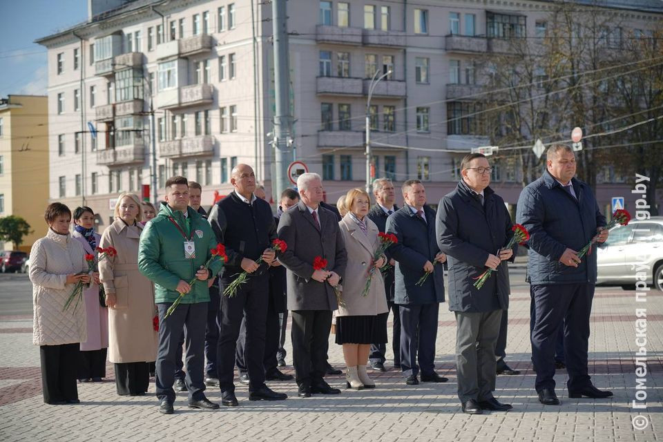 Заместитель главы Администрации Президента Владимир Перцов, министр информации Беларуси Марат Марков, министр культуры Анатолий Маркевич, помощник Президента — инспектор по Гомельской области Юрий Горлов, член Совета Республики, первый секретарь Центрального комитета БРСМ Александр Лукьянов, руководство области и города возложили цветы и венки к памятному знаку жертвам геноцида белорусского народа в годы Великой Отечественной войны на площади Восстания в Гомеле и почтили память погибших минутой молчания.