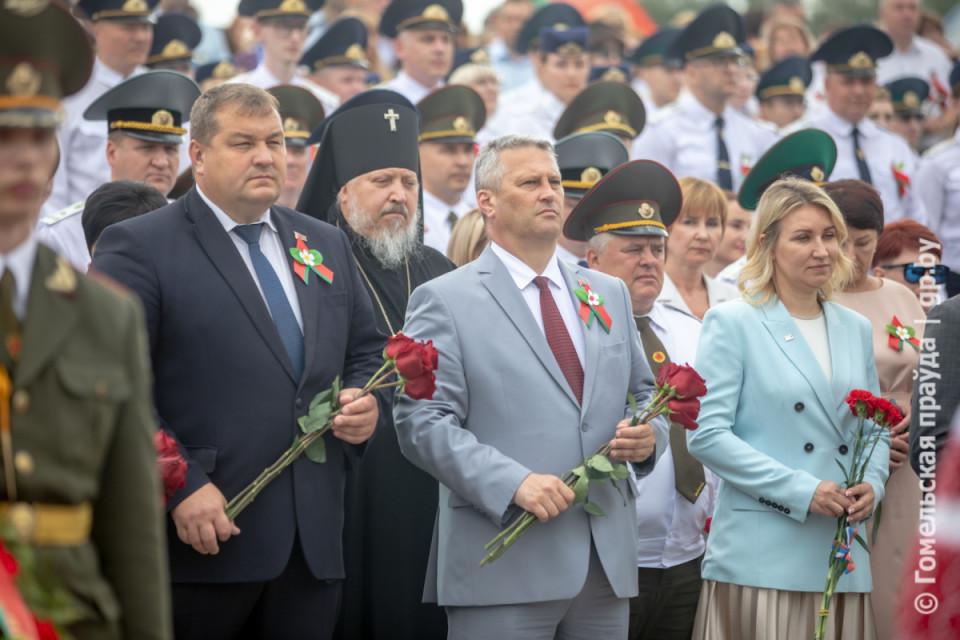 – Этот день для всех нас наполнен особым смыслом: 3 июля 1944 года в ходе операции «Багратион» от гитлеровцев была освобождена столица Беларуси, – сказал председатель Гомельского городского исполнительного комитета Владимир Привалов. – Годы оккупации оставили неизгладимый след в памяти народа. С первого дня и на протяжении всей войны гитлеровцы не щадили никого – ни стариков, ни детей, ни женщин. Для истребления мирного населения на территории мирной Беларуси они создали 260 концлагерей, где зверски замучили более 800 тысяч человек. Фашисты уничтожили более 9 тысяч населенных пунктов, 637 из которых вместе с людьми. Около 400 тысяч земляков депортированы в Германию – половина погибла на каторжных работах.
